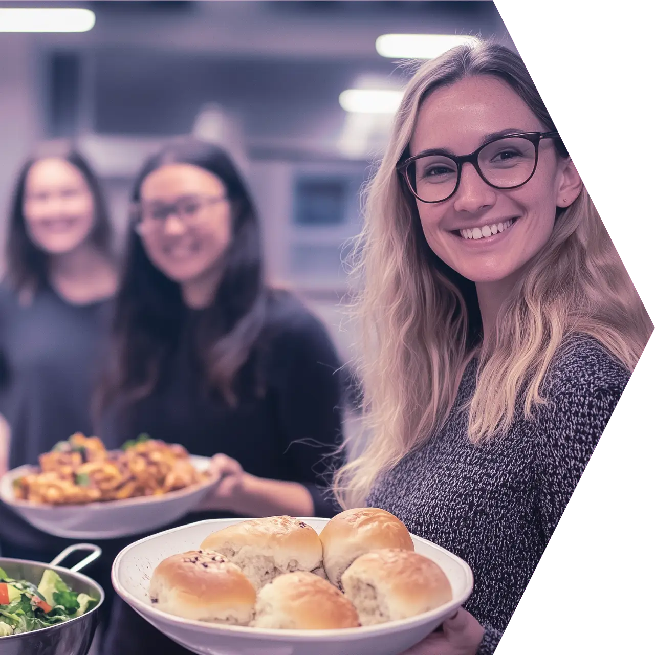 We provide hot meals, beverages, dessert, friendly faces, clothes, shoes, resource referrals, activities and door prizes.